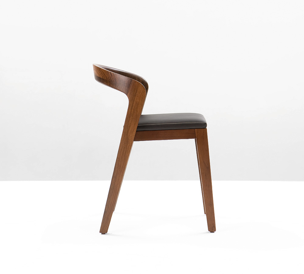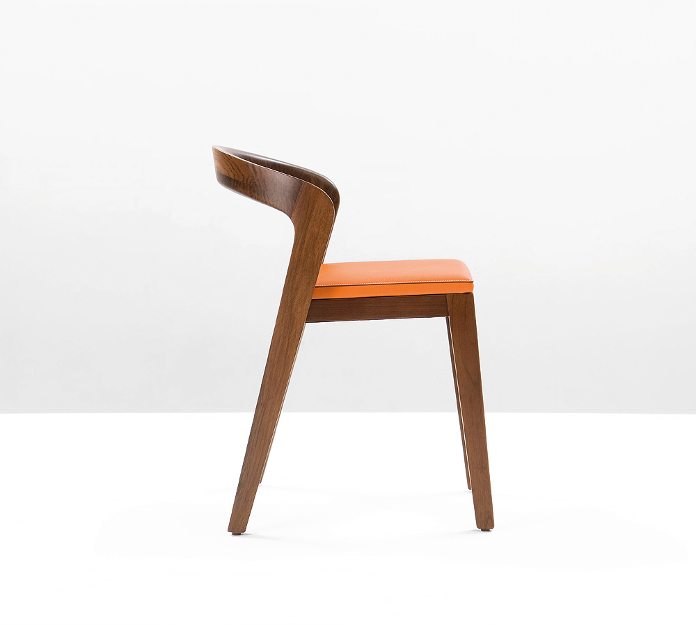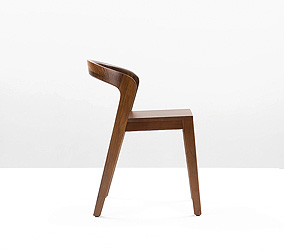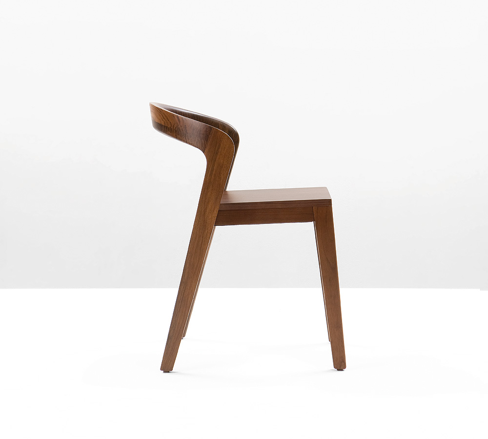 Eleganter Stuhl aus Echtholz in einzigartigem zeitgenössischem Design. Typische Merkmale des "Play" sind: leicht stapelbar, ergonomisch geformt und sehr bequem, kompakt und luxuriös, im Wohn- und Geschäftsbereich einsetzbar, kann sowohl drinnen als auch draußen genutzt werden