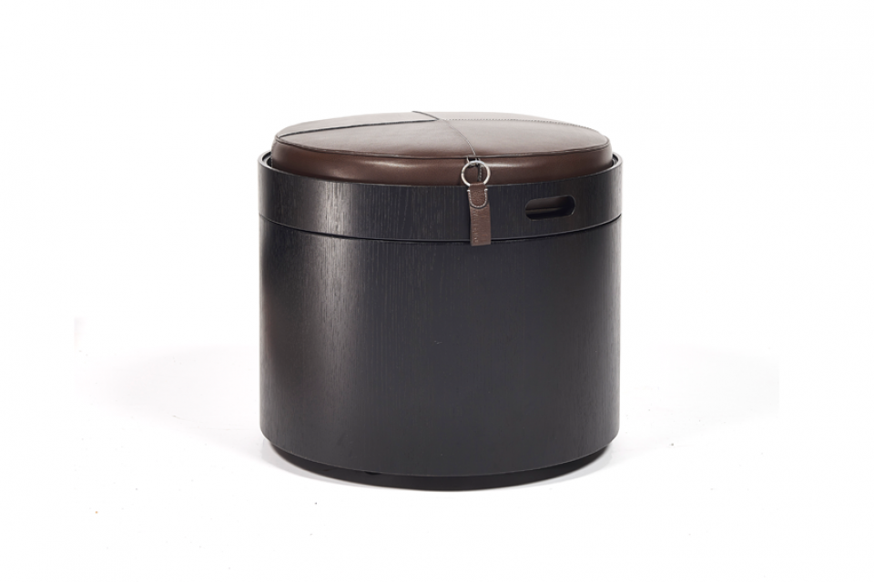 Multifunctional, luxurious design object: serviceable as pouf, side table, serving tray and storage trunk. Characteristics of the Stoll 50: on wheels, fitable in every interior, inside and outside finish in veneer wood, as option available: cushion in top quality leather, hand crafted manufactured (produced)