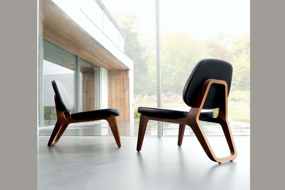 Ce modèle fait un clin d'oeil vers les créations avant-gardistes de Charles Eames. L'emploi de matériaux classiques, comme le bois et le cuir forme un contraste avec l'esthétique contemporain. Le cadre en bois constitue un ensemble naturel avec l'arrière hexagone éblouissant de cette chaise. Les coussins sont sobres mais offrent un aspect chaud grâce à l'usage de cuir. Les coins arrondis du meuble offrent cette création un aspect doux et féminin.