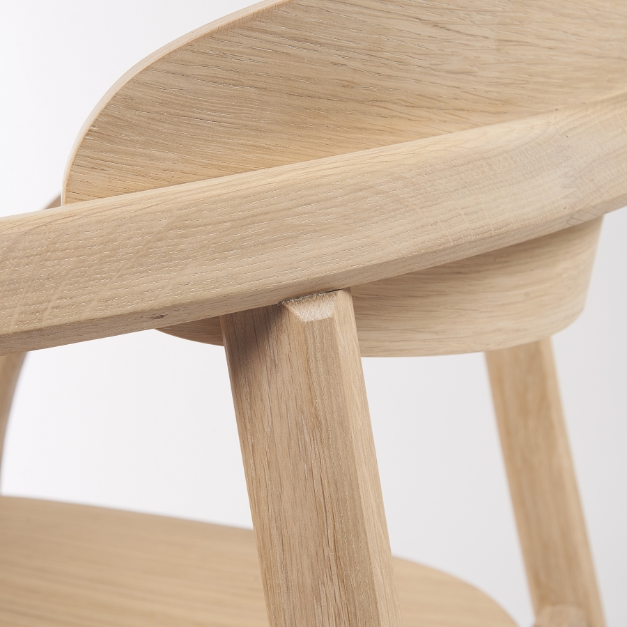 Arch is a dynamic and elegant chair combining simplicity and subtlety. A rich and sinuous massive wood structure is combined with leather upholstered seat and backrest. The unique identity of Arch lays in its fine proportions and a soft sinuous line as well as in its inviting oval chip shaped backrest.